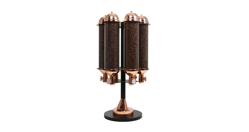 در قسمت بالای لوله شیشهای یا استیل یک کلاهک یا قیف برنجی وجود دارد که از طریق آن قهوه به داخل سیلو ریخته میشود. کارخانههای سازنده یک دریچه خروجی نیز در قسمت زیرین این لوله قرار میدهند. این دریچه از جنس برنج ضد زنگ و باکیفیت است. سرعت جریان خروج با اهرم تعبیه شده در انتهای محفظه کنترل میگردد. قطر دهانه خروجی باید با میزان مصرف شما متناسب باشد.