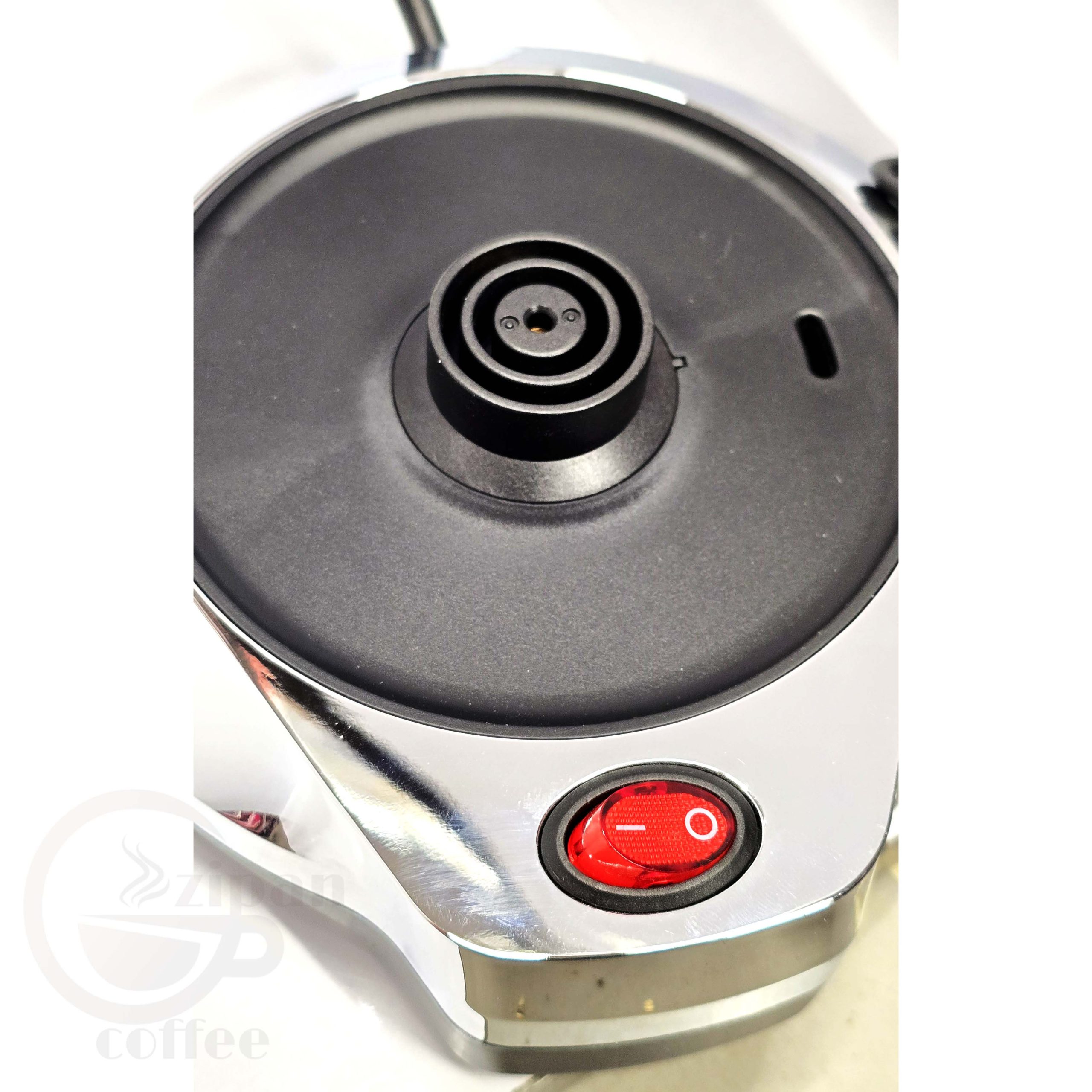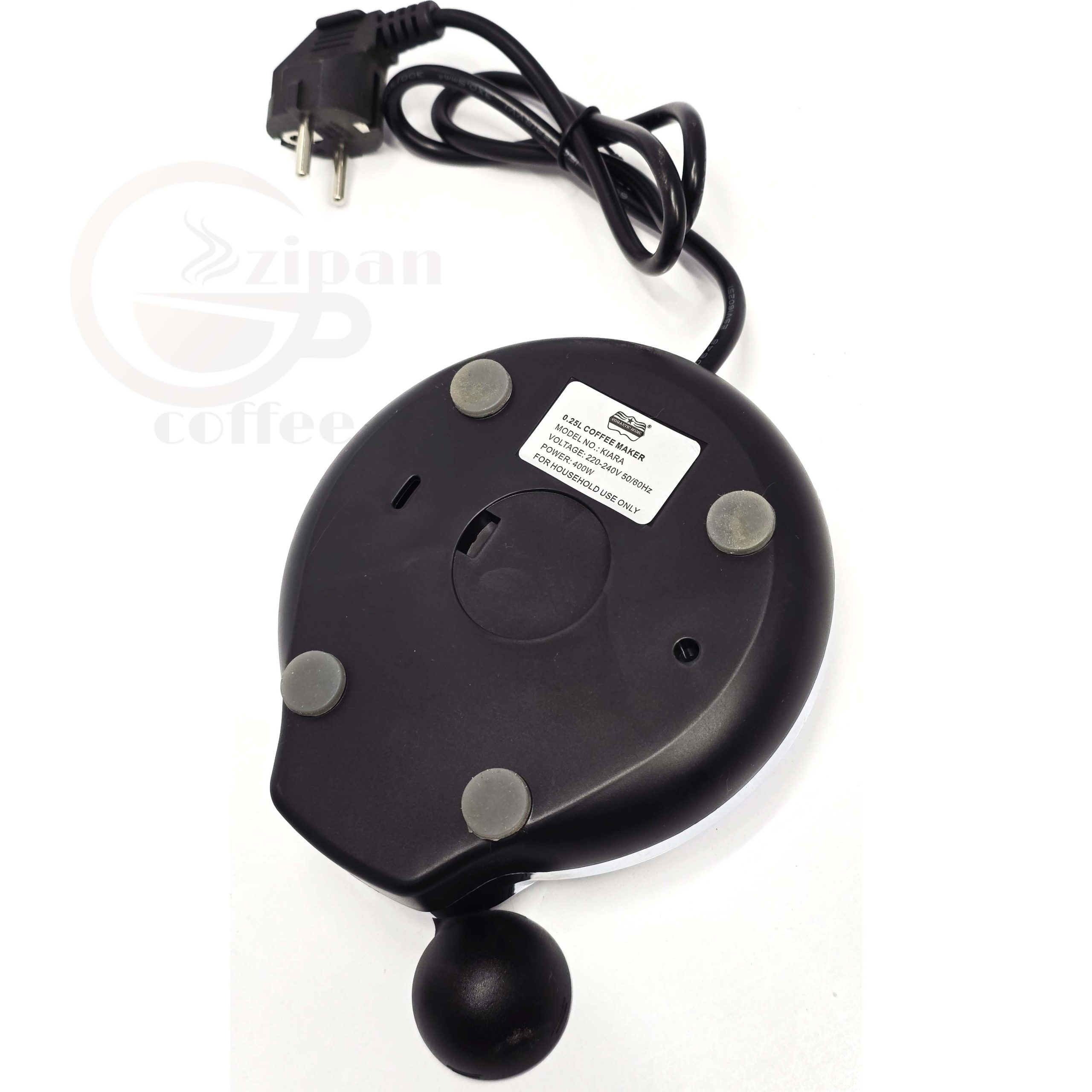 دسته دستگاه از پلاستیک مقاوم به حرارت ساخته شده تا هنگام ریختن قهوه دست شما داغ نشود. روی پایه برق یک کلید خاموش/روشن قرار گرفته که کار با دستگاه را بسیار ساده و قابل کنترل میکند.