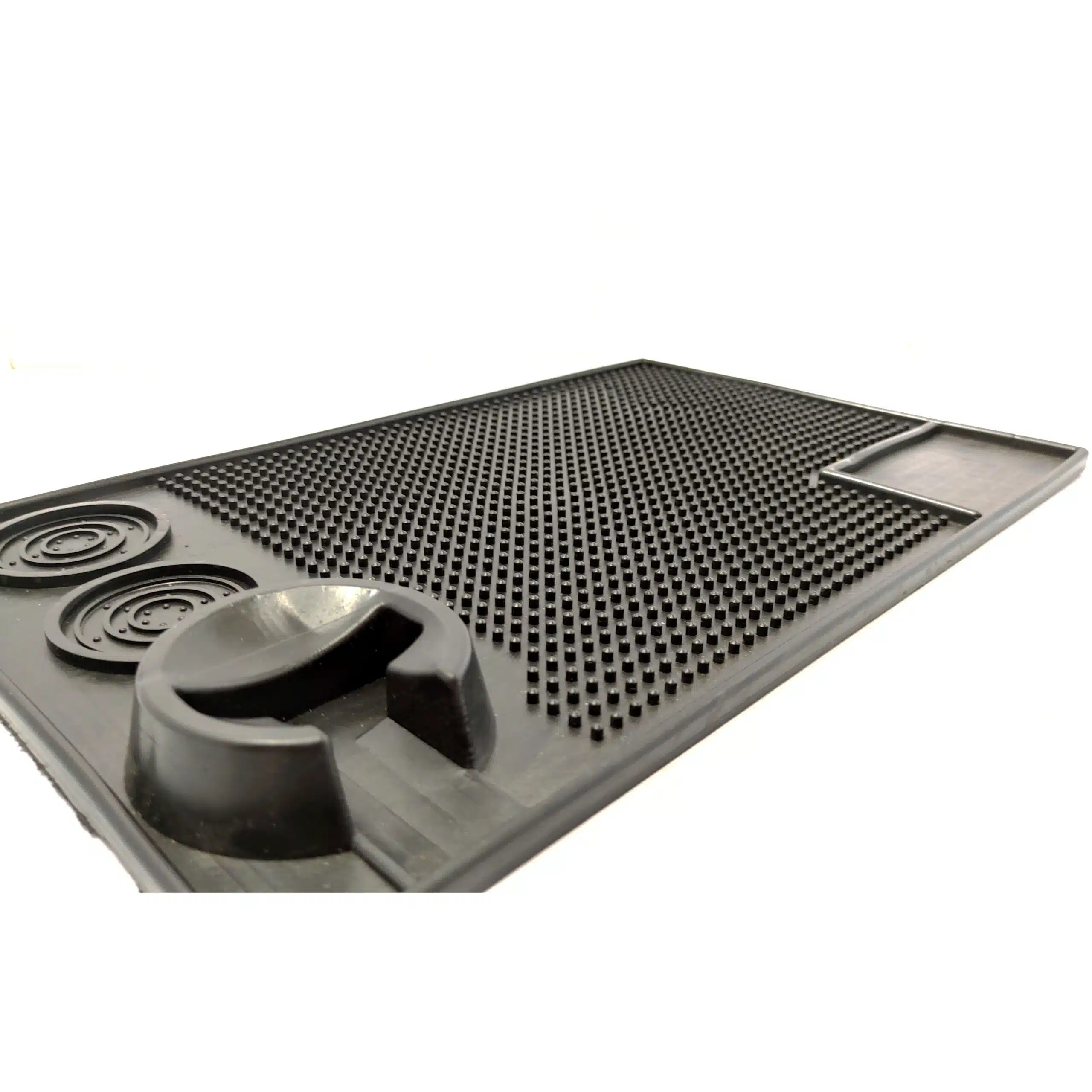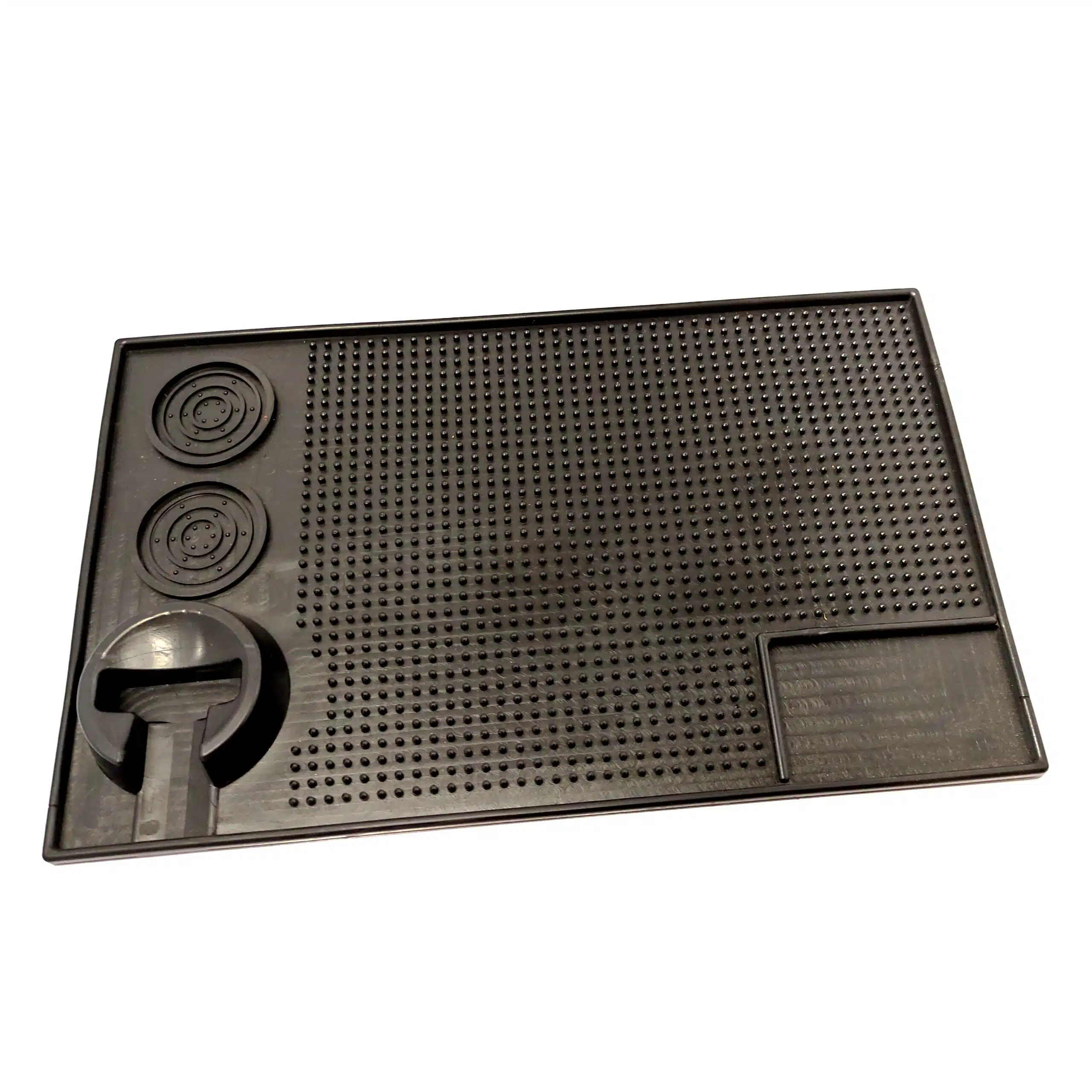 بار مت دارای طراحی منحصر به فردی است. پین های سیلیکونی بر روی سطح مت بار قهوه ، با فاصله های بسیار نزدیک از هم در نظر گرفته شده که مانع از سر خوردن لیوان ها و سایر ظروف می گردد.