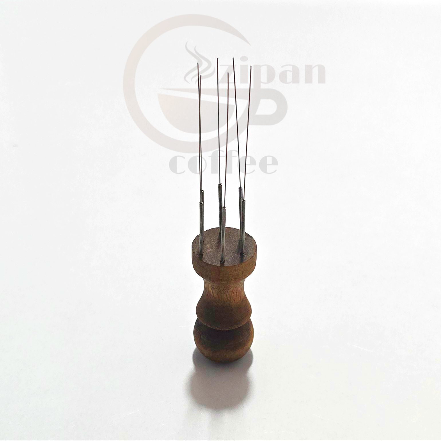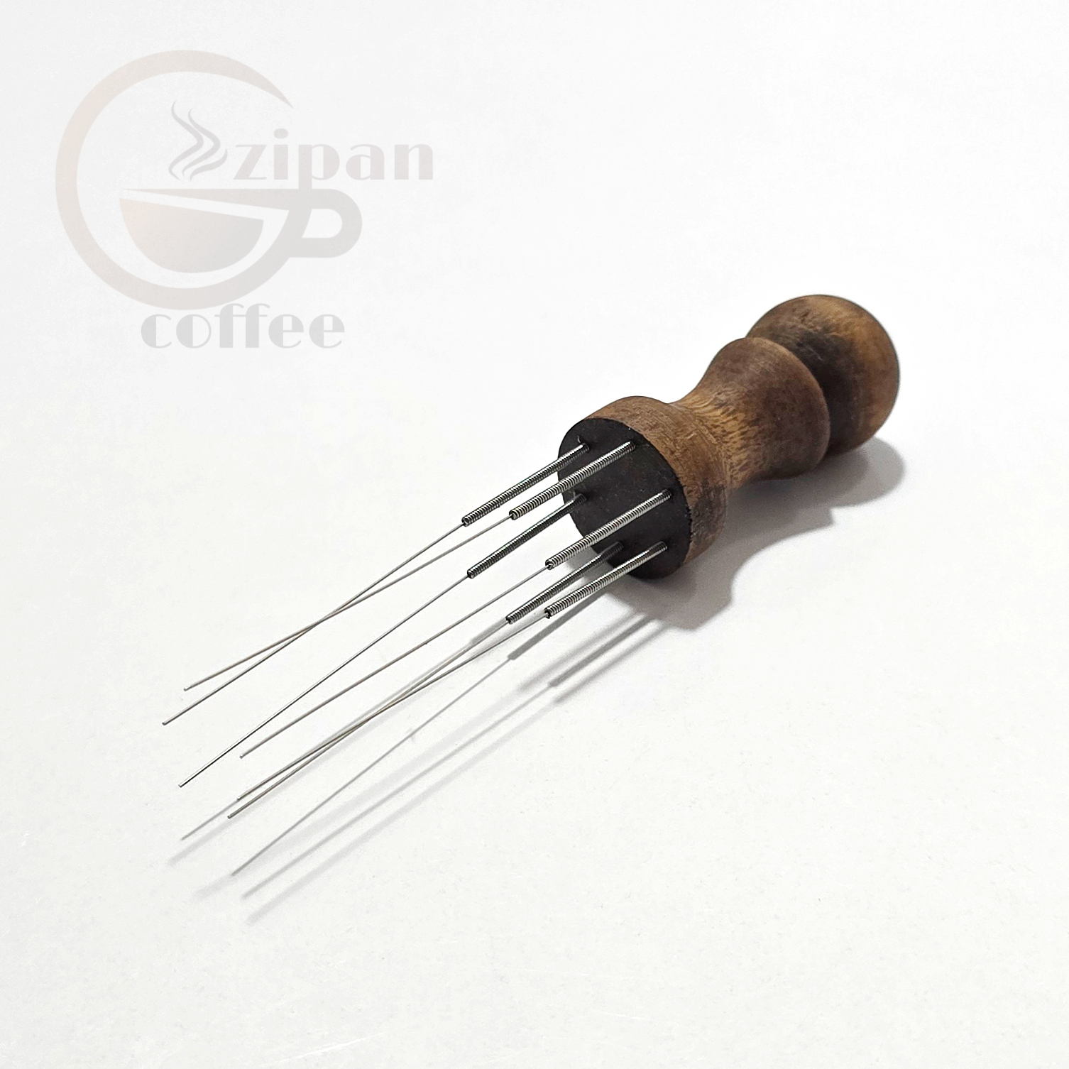 این مدل با دستهی چوبی کلاسیک و خوشدست طراحی شده و حس طبیعی و دلنشینی در هنگام استفاده ایجاد میکند. سوزنهای نازک فلزی آن با دقت بالا در بدنه جای گرفتهاند تا قهوه را بدون فشردگی یا شکستن ذرات، به نرمی در سطح پخش کنند.